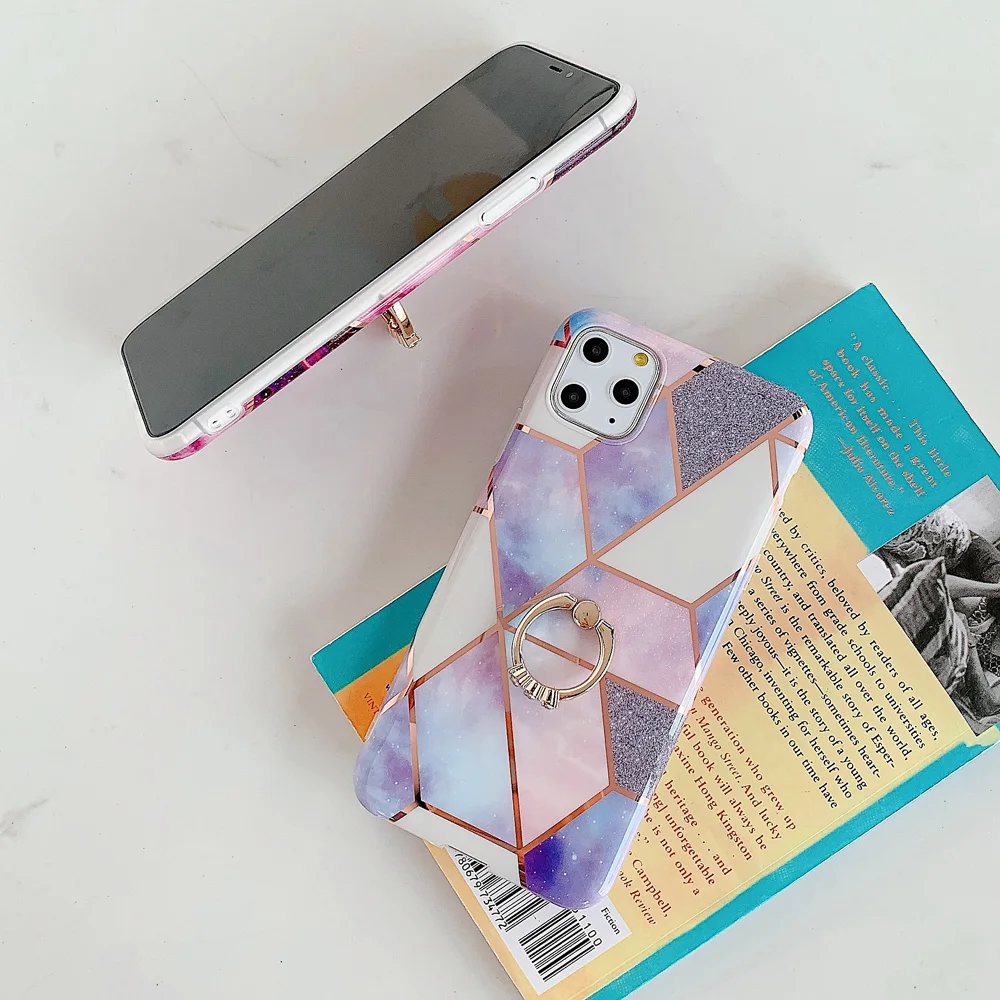 OTAO Electroplate Geometric Marble Ring Holder Case For Samsung S10 Plus S8 S9 A70 A50 Note 9 8 10 Ring Kickstand Soft IMD Cover,For iPhone 11 2019 XS MAX XR X 8 7 6 6S Plus Case Fashion Diamond Mirror Back Cover For iPhone 11 Pro Max 8plus Candy Color Case, For iPhone 11 2019 XS MAX XR X 8 7 6 6S Plus Case Fashion Diamond Mirror Back Cover For iPhone 11 Pro Max 8plus Candy Color Case