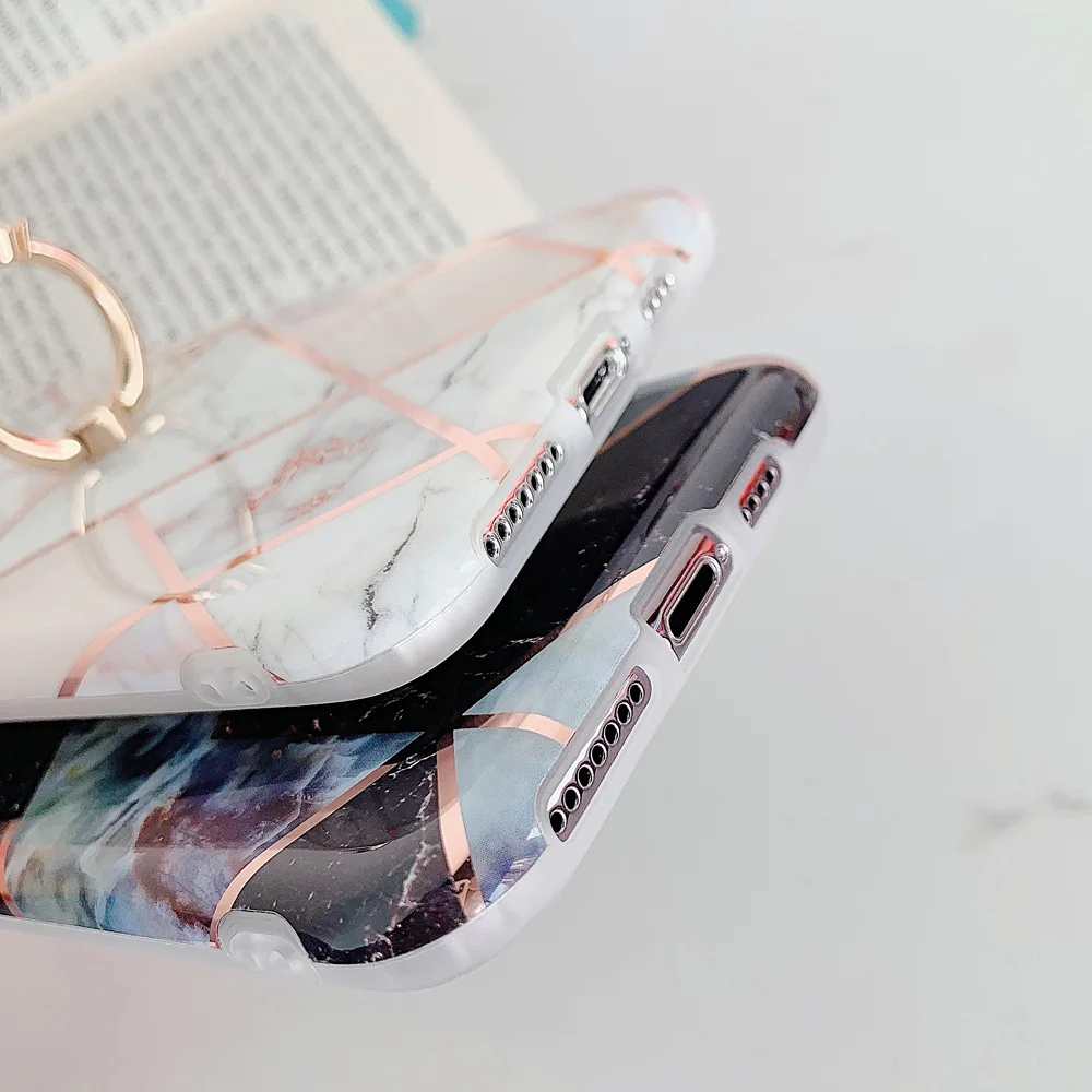 Promo OTAO Plating Geometric Marble Case For iphone 11 2019 Pro max XS XR X 8 7 6 6S Plus Ring Holder Cas